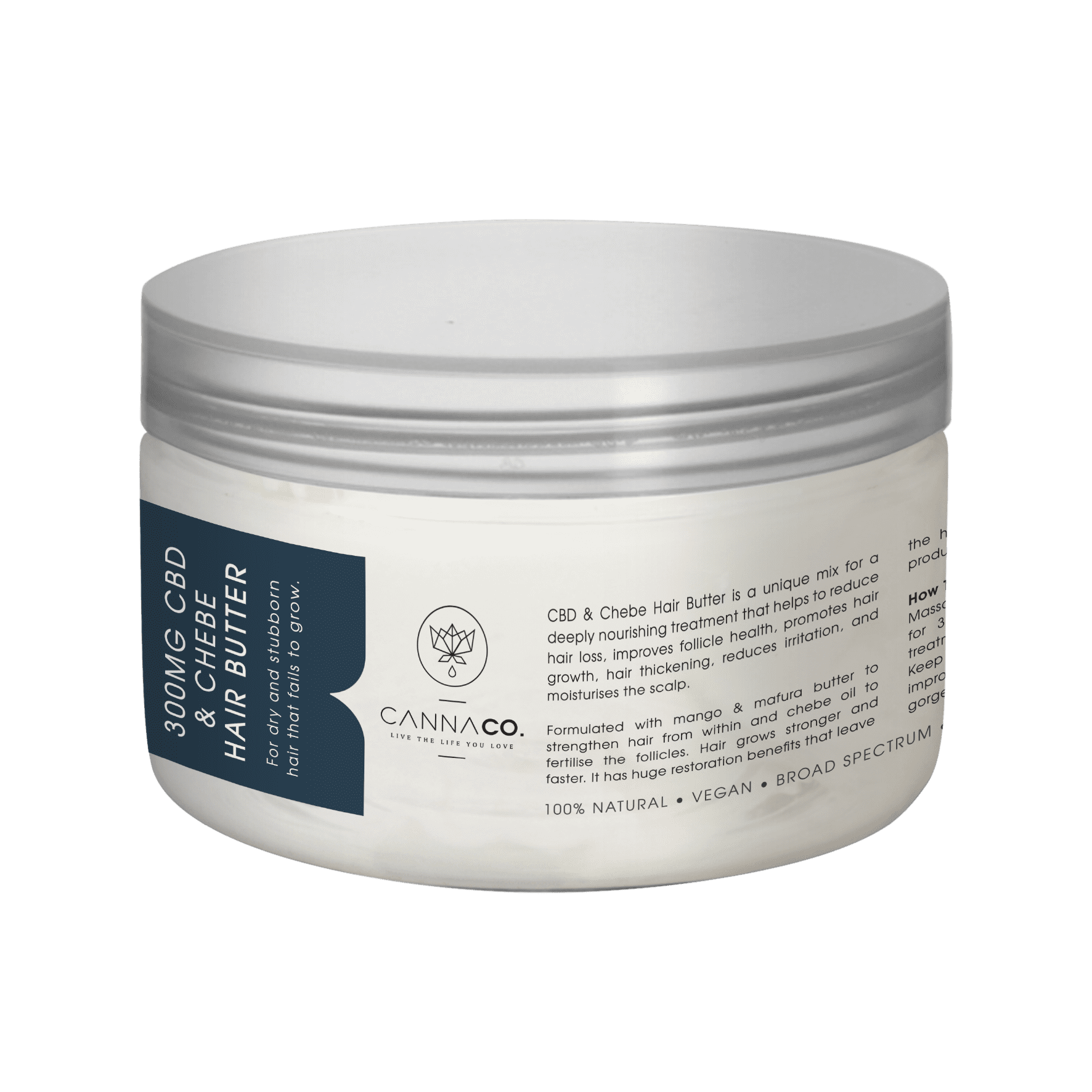 CBD & Chebe Hair Butter is a unique mix for a deeply nourishing treatment that helps to reduce hair loss, improves follicle health, promotes hair growth and hair thickening, reduces irritation, and moisturises the scalp.